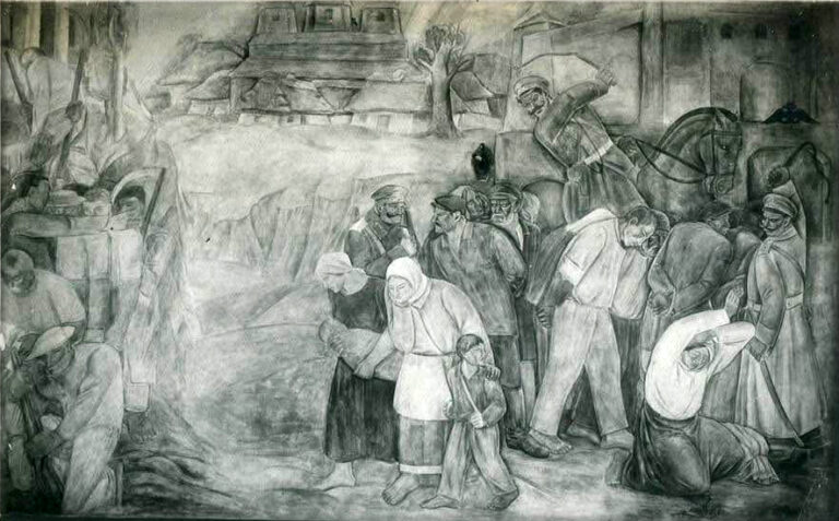 Був у мене архів. Ескізи, начерки. Все пропало. Після війни я ходив у санаторій, бачив фрески. Згадувалось, як працювали, як співали веснянку [«А вже весна, а вже красна…»]: – Із стріхи вода капле, А молодому козаченьку мандрівочка пахне. Фрески селянам подобались. Вони говорили: “Ну просто, як в цекркві”» [4]. У той час молодь захопилася стилем Дієго Рівери, з яким познайомилися через завезені М. Бойчуком французькі та італійські журнали після його горезвісної подорожі Європою у 1926-1927 роках.